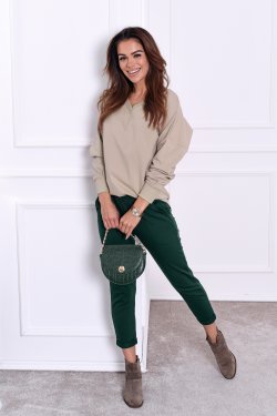 "EDITH" to bluza damska z czarnym suwakiem z tyłu. Motel typu oversize. Bluza z długim rękawem zakończonym ściągaczem. Posiada dekolt w serek. Minimalistycznie ozdobiona haftem z logo "OFF PINK" w kolorze bluzy. Uszyta z przyjemnej bawełny dresowej od polskiego producenta.