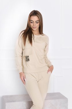 Bluza damska z długim rękawem. Model jednokolorowy. Dół bluzy oraz rękawy zakończone elastycznym ściągaczem. Ozdobę oraz praktyczny dodatek stanowi pojemna kieszonka z nadrukiem. Bluza wykonana z przyjemnej bawełny dresowej od polskiego producenta.