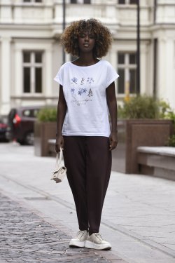 BLUZKA DAMSKA Z KRÓTKIM RĘKAWEM I NADRUKIEM - ŁĄKA