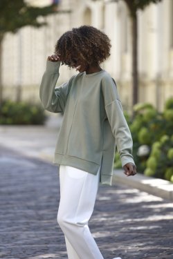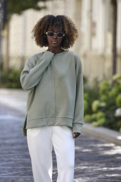 Bluzka Tiara to połączenie swobody i stylu. Jej oversize’owy krój gwarantuje maksymalny komfort i modny wygląd bez uczucia skrępowania. Wykonana z miękkiego i przyjemnego w dotyku materiału (55% rayon, 38% poliester, 7% spandex), jest tak lekka, że niemal nie czuć jej na ciele – jak druga skóra. Doskonale sprawdzi się zarówno do pracy jak i na różne spotkania. Minimalistyczna forma i staranne wykończenia nadają jej uniwersalny charakter.