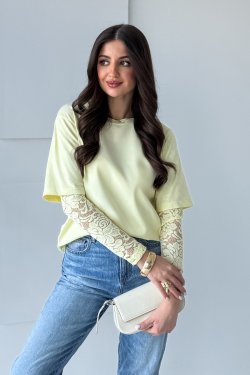 Bluzka Versa to połączenie eleganckiego i sportowego stylu. T-shirt do którego doszyte są koronkowe, długie rękawy.