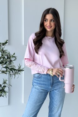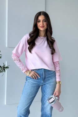 Bluzka Versa to połączenie eleganckiego i sportowego stylu. T-shirt do którego doszyte są koronkowe, długie rękawy.