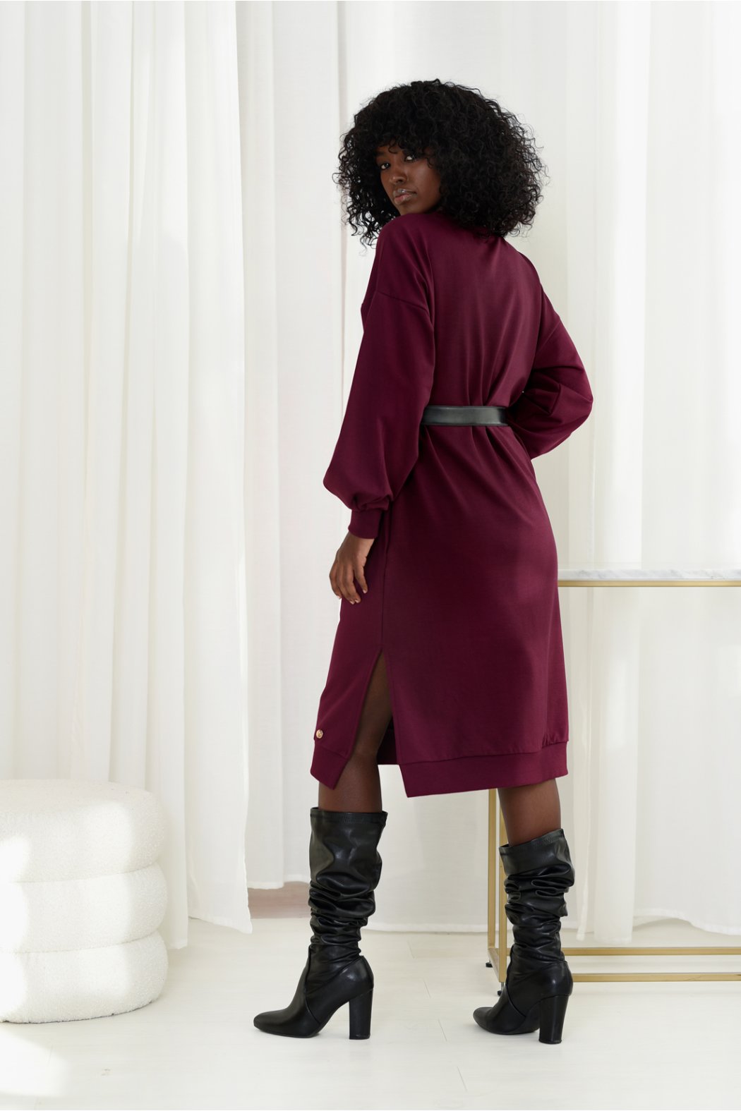 Wygodna sukienka dresowa o luźnym, oversize’owym kroju, zaprojektowana z myślą o komforcie i codziennej swobodzie. Rozcięcia po bokach nadają jej lekkości i nowoczesnego charakteru. Posiada praktyczne, boczne kieszenie ukryte w szwach, które dodają funkcjonalności, nie zaburzając jednocześnie minimalistycznej formy. Model doskonale sprawdzi się w wielu stylizacjach.