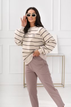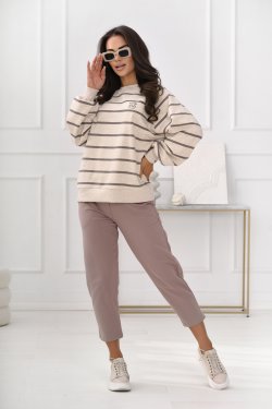 Stylowa i wygodna bluza o luźnym kroju, zaprojektowana z myślą o codziennym komforcie. Wzór w poziome pasy nadaje jej ponadczasowy charakter, a subtelne logo Off Pink na piersi podkreśla wyjątkowy styl marki. Model posiada elastyczne ściągacze przy dekolcie, rękawach oraz na dole, zapewnia to wygodę noszenia przez cały dzień. Idealna do casualowych stylizacji – zestawisz ją zarówno z jeansami, jak i legginsami czy spodniami dresowymi.