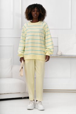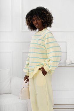 Stylowa i wygodna bluza o luźnym kroju, zaprojektowana z myślą o codziennym komforcie. Wzór w poziome pasy nadaje jej ponadczasowy charakter, a subtelne logo Off Pink na piersi podkreśla wyjątkowy styl marki. Model posiada elastyczne ściągacze przy dekolcie, rękawach oraz na dole, zapewnia to wygodę noszenia przez cały dzień. Idealna do casualowych stylizacji – zestawisz ją zarówno z jeansami, jak i legginsami czy spodniami dresowymi.