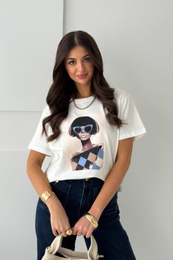 BAWEŁNIANY T-SHIRT Z NADRUKIEM PEGGY