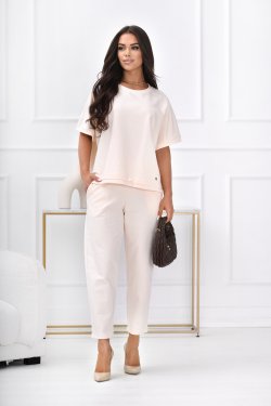 Bluza Novia w delikatnym to idealne połączenie wygody i nowoczesnego minimalizmu. Luźny, lekko oversize’owy fason zapewnia swobodę ruchów i świetnie układa się na sylwetce, tworząc modny, niezobowiązujący look. Model posiada klasyczny, okrągły dekolt oraz krótkie, szerokie rękawy, które nadają całości lekkości i nowoczesnego charakteru. Subtelny detal w postaci niewielkiej ozdobnej blaszki przy dolnej krawędzi dodaje całości elegancji i podkreśla staranne wykończenie.