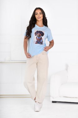 T-shirt damski Arno z dużym nadrukiem. Model o prostym kroju zapewnia komfort noszenia i swobodę ruchów. Wykonany z wysokiej jakości dzianiny bawełnianej z domieszką elastanu, dzięki czemu jest miękki, oddychający i lekko elastyczny. Idealny wybór do codziennych i sportowych stylizacji. Świetnie komponuje się zarówno z jeansami, legginsami jak i spodenkami!